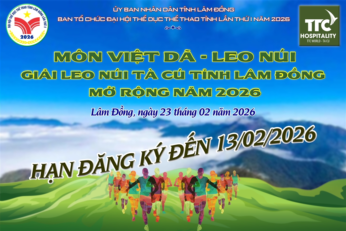 Thực hiện Kế hoạch của UBND tỉnh Lâm Đồng về việc tổ chức Đại hội Thể dục Thể thao các cấp tiến tới Đại hội Thể dục Thể thao tỉnh Lâm Đồng lần thứ I năm 2026; thiết thực chào mừng các ngày lễ lớn của đất nước, kỷ niệm 96 năm Ngày thành lập Đảng Cộng sản Việt Nam (03/02/1930 – 03/02/2026) và Tết Nguyên đán Bính Ngọ 2026, Sở Văn hóa, Thể thao và Du lịch tỉnh Lâm Đồng tổ chức Giải Leo núi Tà Cú tỉnh Lâm Đồng mở rộng năm 2026.
