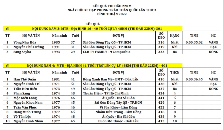 + NHÓM 2: NAM MTB - ĐỊA HÌNH 41 TUỔI TRỞ LÊN CỰ LY 48KM - 57 VĐV - SỐ ĐEO: 401 - 457