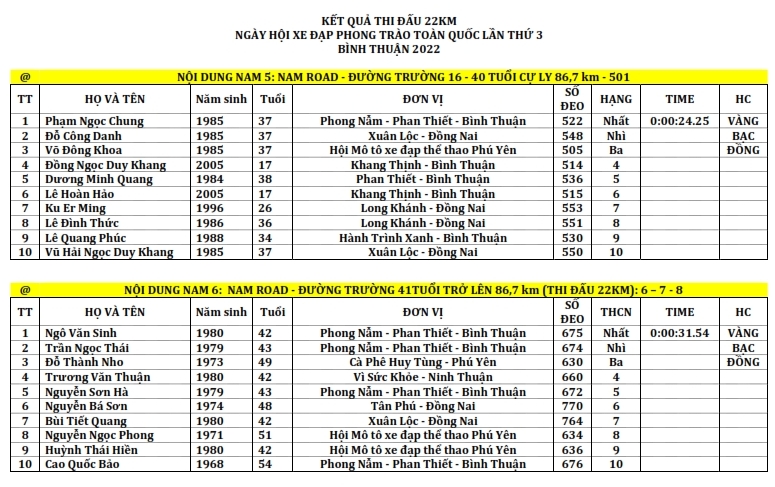 DANH SÁCH VẬN ĐỘNG VIÊN THI ĐẤU 22KM TỪ NGÃ BA ĐỒI HỒNG: Click vào từng nhóm để xem và tải về dưới đây