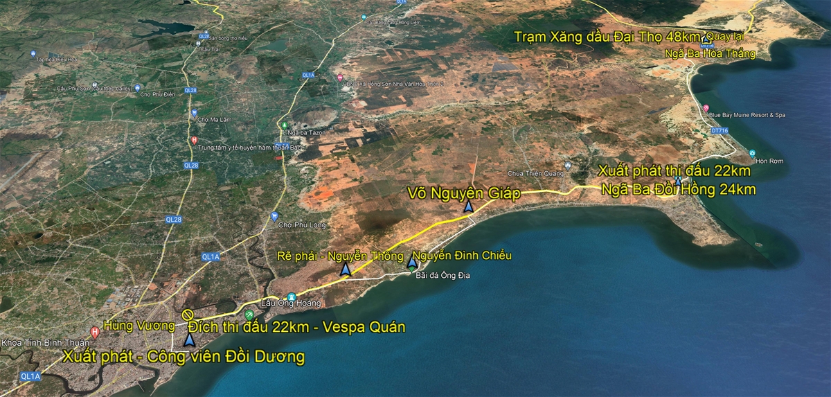 Dưới đây là các thông tin, thông báo clip lộ trình chinh phục diễu hành 86,7km và 48km (trong đó thi đấu 22km từ Ngã Ba Đồi Hồng đến Hùng Vương (trước Quán Vespa)