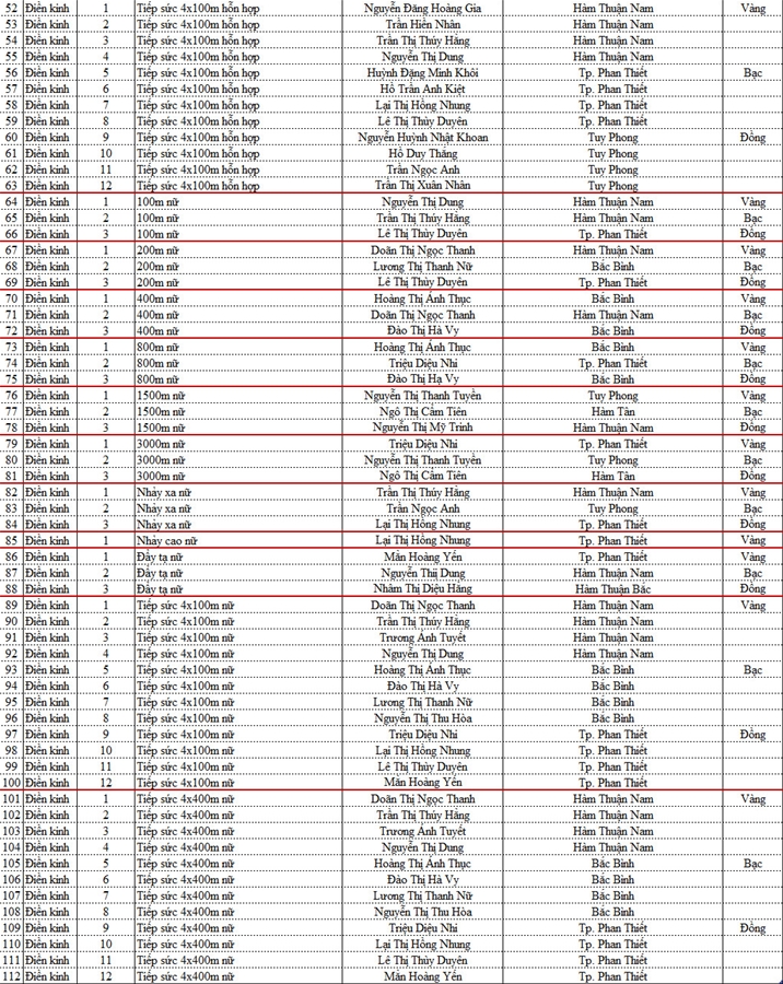Môn Điền kinh ngày 28/8 - 30/8 Vòng loại Hàm Thuận Bắc -