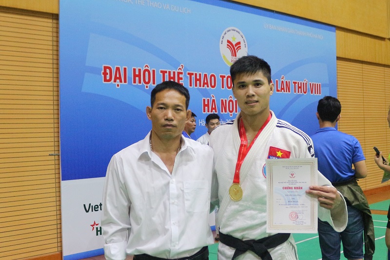 VĐV Nguyễn Tấn Công môn Judo (bên phải)