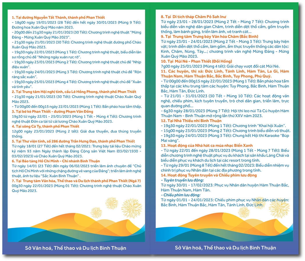 Các hoạt động văn hóa, thể thao và du lịch sẽ diễn ra trên khắp nẻo đường của tỉnh Bình Thuận nhân dịp Tết Nguyên đán Quý Mão 2023.