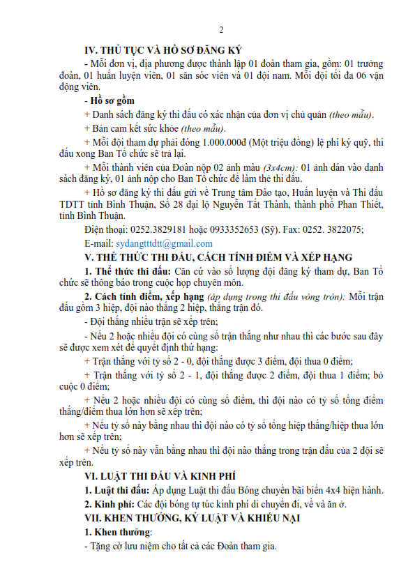 Điều lệ Giải Bóng chuyền hơi Nữ vô địch tỉnh Bình Thuận năm 2024
