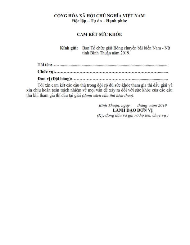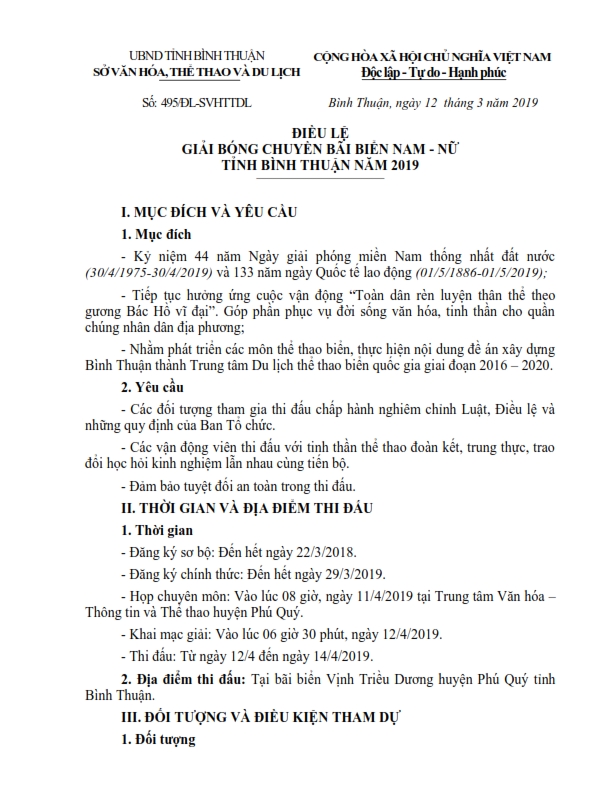 DOWNLOAD Điều lệ Giải Bóng chuyền bãi biển nam, nữ tỉnh Bình Thuận năm 2019