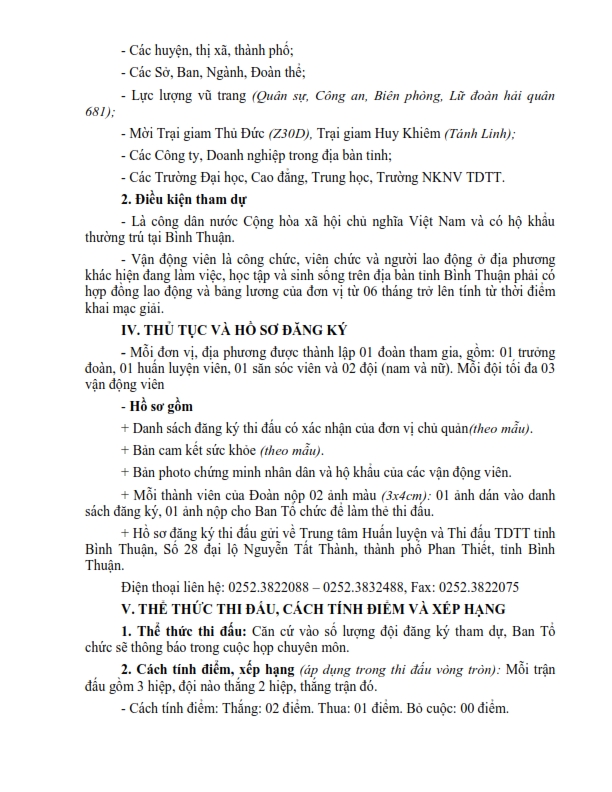 Bảng tổng hợp huy chương - nội dung các môn Đại hội TDTT tỉnh Bình Thuận lần thứ IX - 2022