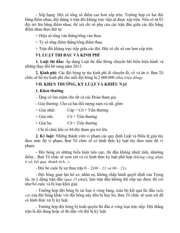Điều lệ Giải Bóng chuyền hơi Nữ vô địch tỉnh Bình Thuận năm 2024