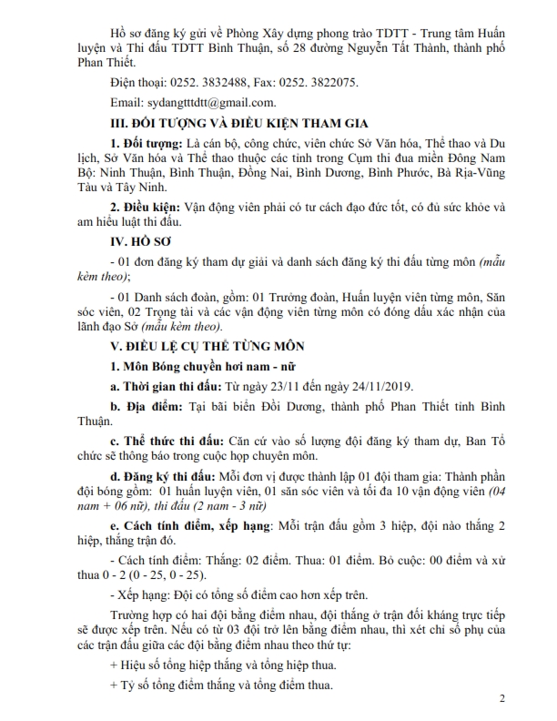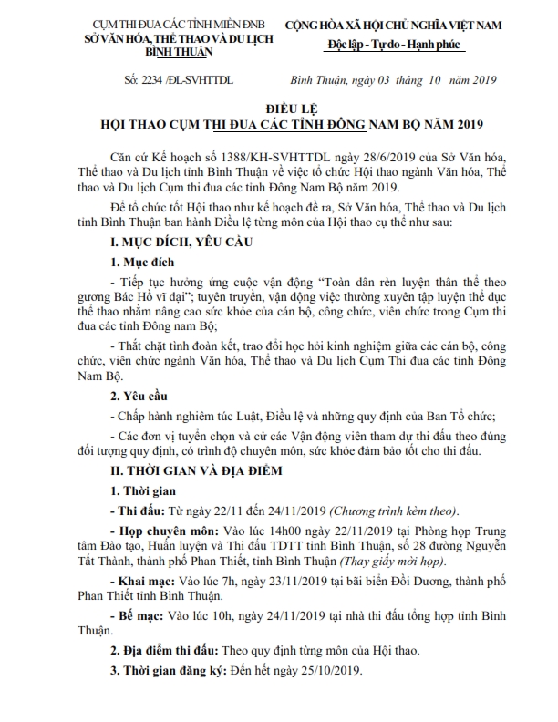 Điều lệ Hội thao cụm thi đua các tỉnh Đông Nam bộ năm 2019