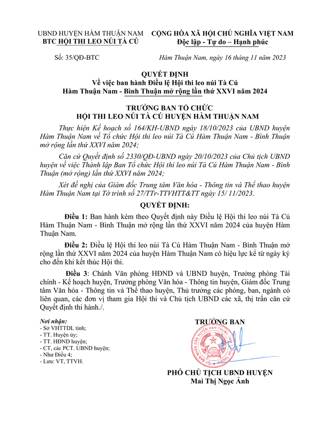 Vào lúc 06g30’ ngày 16/02/2024 (mùng 07 Tết Nguyên đán), giải sẽ chính thức khai mạc và thi đấu chinh phục núi Tà Cú, Hàm Thuận Nam, Bình Thuận. Chi tiết Điều lệ thi đấu giải.