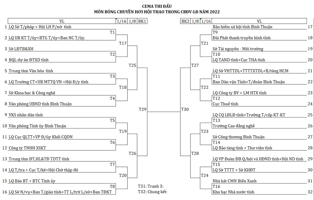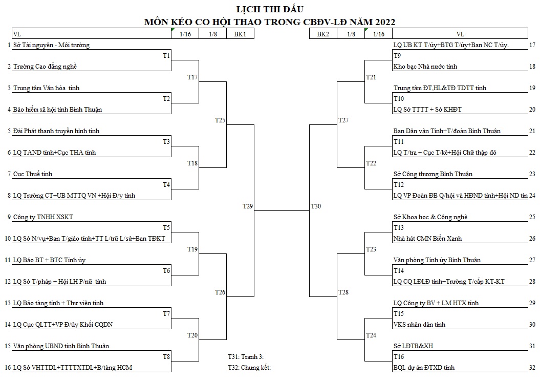 DANH SÁCH 32 ĐOÀN THAM DỰ