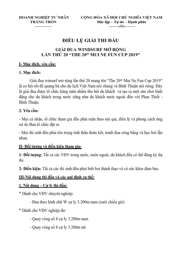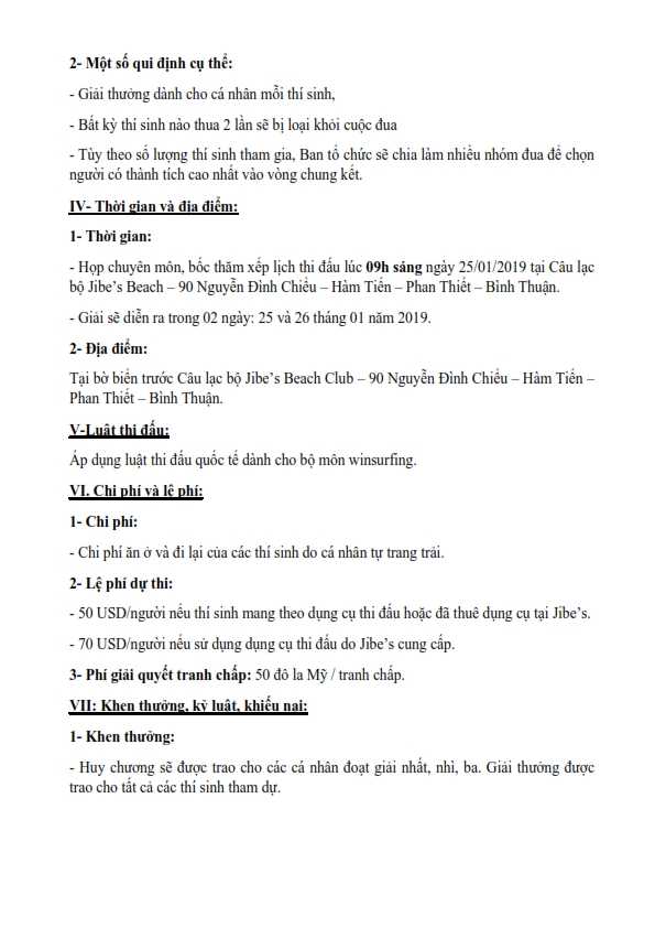 Giải diễn ra trong 2 ngày 25/01 và 26/01/2019 tại CLB Jibe's Beach, Hàm Tiến, Thành phố Phan Thiết. Nét mới năm nay, ngoài việc có sự tham dự của các vận động viên quốc tế, Ban Tổ chức mời mở rộng các đối tượng trong nước để tham gia tranh tài. Giải do Sở Văn hóa, Thể thao và Du lịch với Doanh nghiệp Tư nhân TRĂNG TRÒN phối hợp tổ chức.