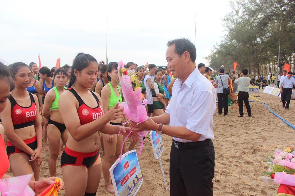 Ông Ngô Minh Chính - Giám đốc Sở VHTTDL Bình Thuận trao huy chương nội dung Nữ