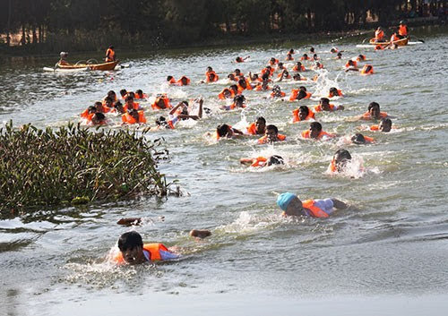 + Bơi: Cự ly 190 mét (có mặc áo phao);