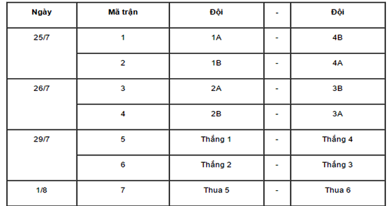 LỊCH THI ĐẤU VÒNG CHUNG KẾT TẠI QUẢNG NAM NĂM 2018