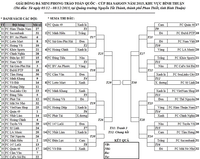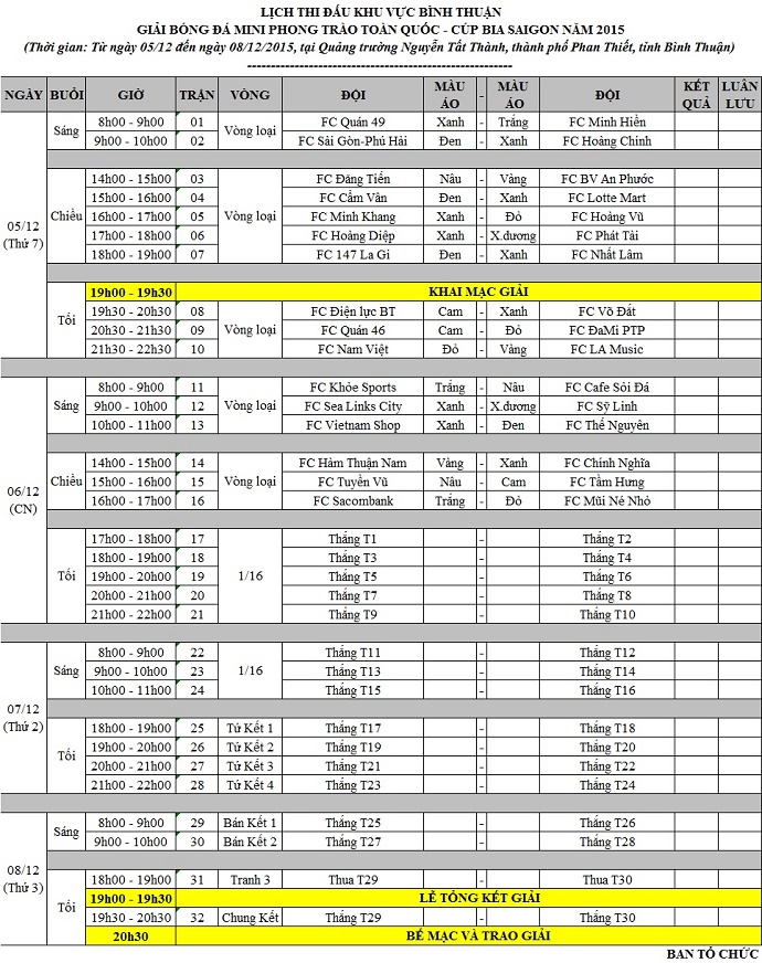 LỊCH THI ĐẤU KHU VỰC BÌNH THUẬN
