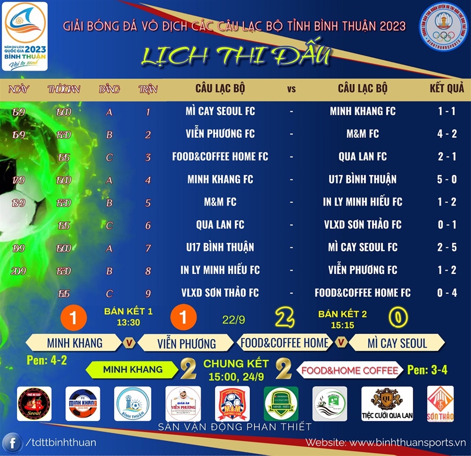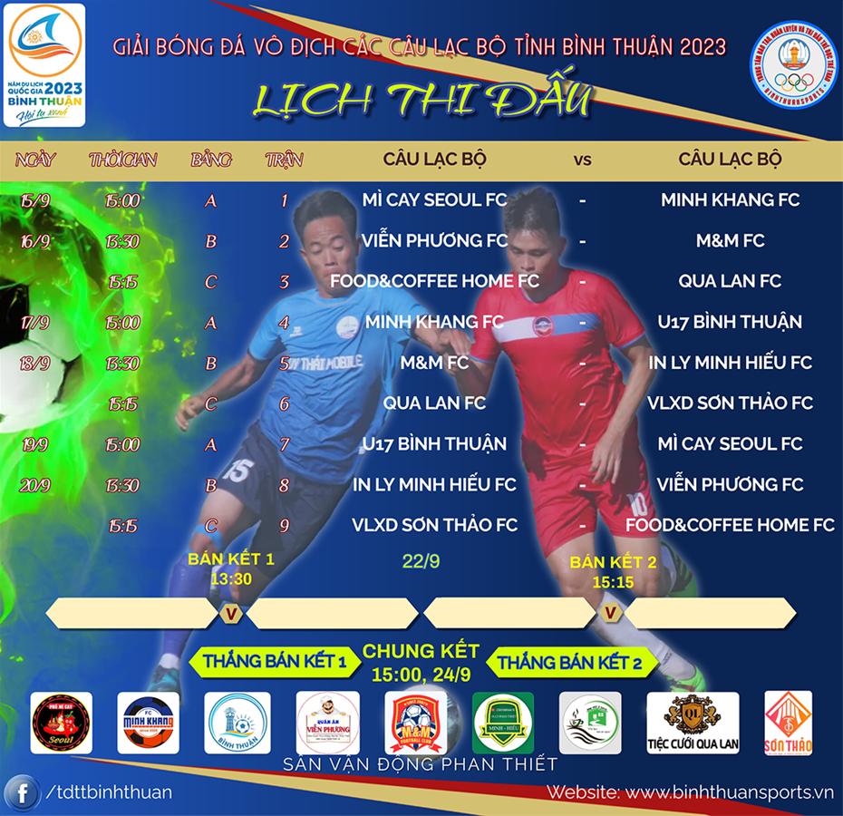 Giải diễn ra từ ngày 15 - 24/9/2023 tại sân vận động Phan Thiết với 09 đội bóng tham dự, chia thành 3 bảng thi đấu vòng tròn chọn 4 đội vào bán kết và tranh chung kết. Trên 12 VĐV ngoài tỉnh được tăng cường và Giám đốc Sở Văn hóa, Thể thao và Du lịch Bình Thuận trao tặng Giấy khen cho các đội tích cực tham dự giải đấu.