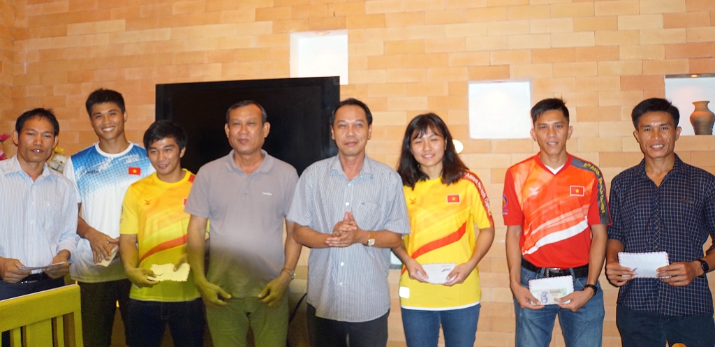 Trước đó, ngày 23/09/2016, nhân chuyến công tác tại thành phố Đà Nẵng, đồng chí Nguyễn Đức Hòa - Phó Chủ tịch UBND tỉnh cùng đoàn Lãnh đạo Sở VHTTDL Bình Thuận do đồng chí Ngô Minh Chính dẫn đầu đã đến thăm, tặng quà và động viên các huấn luyện viên, vận động viên tỉnh Bình Thuận tham dự Đại hội Thể thao bãi biển châu Á lần thứ 5 này với tinh thần phấn đấu hết mình trước hết vì tổ quốc quê hương, vinh dự cá nhân và địa phương.