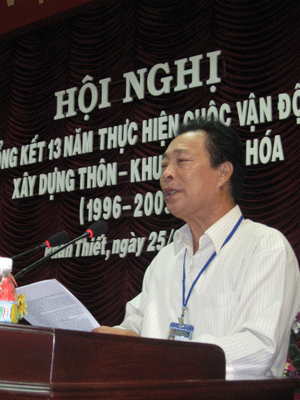 Hôm nay 25/9, UBND tỉnh đã tổ chức Hội nghị Tổng kết 13 năm (1996- 2009) thực hiện cuộc vận động xây dựng thôn- khu phố văn hóa tại Bình Thuận. Hội nghị là dịp để Ban chỉ đạo các cấp gặp gỡ, cùng kiểm điểm, đánh giá tình hình và đề ra giải pháp tiếp tục triển khai cuộc vận động đạt hiệu quả hơn trong thời gian tới.
