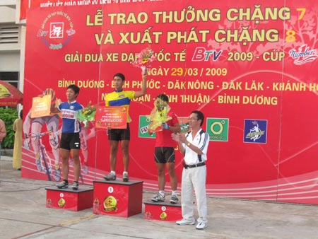 Sáng nay 29/3, Ban tổ chức Giải Đua xe đạp BTV- Cúp Number One đã tiến hành trao thưởng chặng 7 và xuất phát chặng 8 tại Trung tâm TDTT Bình Thuận. Giải năm nay do Đài PT- TH phối hợp Sở Văn hóa, Thể thao & Du lịch Bình Dương tổ chức với sự tham gia của 15 đội gồm 75 VĐV