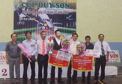 Giải vô địch Billiards Carom 3 băng tỉnh Bình Thuận mở rộng năm 2014 Cúp Duy Sơn vừa kết thúc cuối tuần qua tại Nhà thi đấu tổng hợp - Trung tâm TDTT tỉnh. Trải qua 3 ngày thi đấu liên tục với 48 trận tranh tài chính thức, hoạt động thể thao này đã nhận được nhiều lời khen ngợi từ các đoàn, trọng tài và đại diện Liên đoàn Billiards & Snooker Việt Nam.