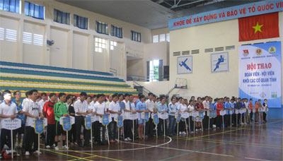 Sáng nay (24/4), tại Nhà thi đấu Tổng hợp – Trung tâm thể dục thể thao tỉnh, Ban Thường vụ Đoàn khối phối hợp với Ban Thường vụ Công đoàn Viên chức và Ban Thường vụ Hội Cựu Chiến binh khối các Cơ quan tỉnh tổ chức Hội thao Đoàn viên – Hội viên Khối các Cơ quan tỉnh năm 2012.