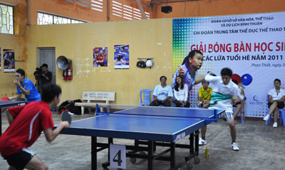 Ngày 30/7, Chi đoàn Trung tâm Thể dục thể thao tỉnh tổ chức Giải Bóng bàn học sinh các lứa tuổi hè 2011 tại CLB Bóng bàn Nguyễn Tất Thành - Trung tâm Thể dục thể thao tỉnh.