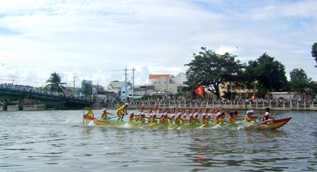 Chiều 16/5, dưới ánh nắng dịu của "hè về - biển gọi", hàng ngàn người trong và ngoài tỉnh đứng chật kín hai bên bờ sông Cà Ty, TP Phan Thiết dự khán giải đua ghe truyền thống Lễ hội Cầu ngư năm 2009.