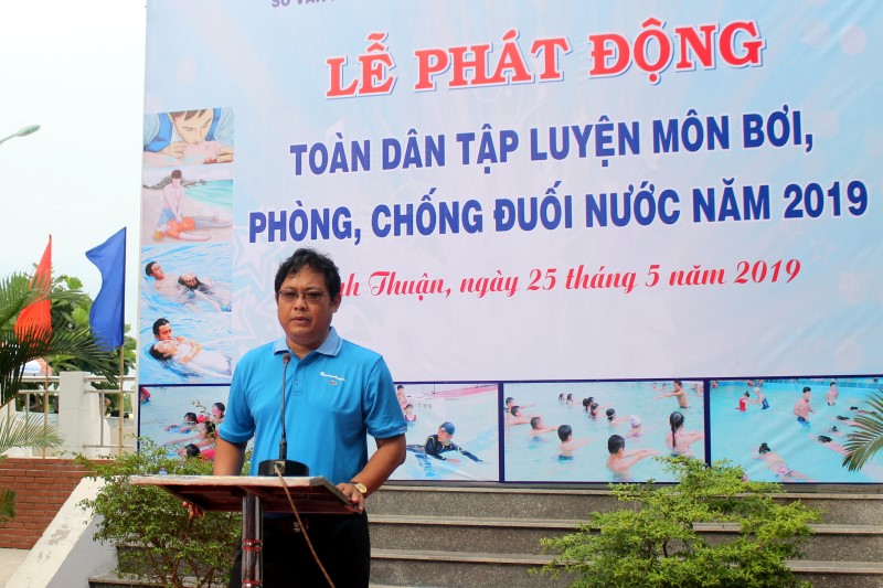 Sáng 25/5, tại hồ bơi Trường năng khiếu nghiệp vụ thể dục, thể thao tỉnh, Sở Văn hóa, Thể thao và Du lịch tỉnh Bình Thuận tổ chức lễ phát động toàn dân tập luyện môn bơi, phòng, chống đuối nước với sự tham gia của hơn 500 đại điểu, đại diện cho các trường học, các cơ sở kinh doanh dịch vụ du lịch và học sinh, sinh viên trong tỉnh.