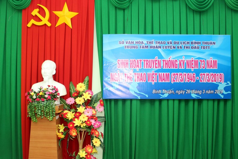 Chiều ngày 26/3/2019, Trung tâm Huấn luyện và Thi đấu TDTT Bình Thuận tổ chức gặp mặt kỷ niệm 73 năm Ngày Thể thao Việt Nam 27/3 (1946 - 2019). Dự buổi gặp mặt có ông Nguyễn Thanh Linh – Phó Giám đốc Trung tâm Huấn luyện và Thi đấu TDTT tỉnh và Lãnh đạo phòng TCHC, HLTĐ, Đoàn viên, Thanh niên Chi đoàn TNCS Hồ Chí Minh và Vận động viên tuyến trẻ, tuyến tuyển đơn vị.