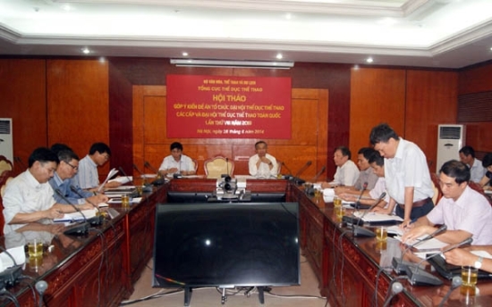 Tại buổi làm việc sáng 4/7, Thứ trưởng Bộ VHTTDL Lê Khánh Hải đã nghe Ban soạn thảo Đề án tổ chức Đại hội TDTT các cấp và Đại hội TDTT toàn quốc lần thứ VIII năm 2018 báo cáo về tiến độ thực hiện Đề án.