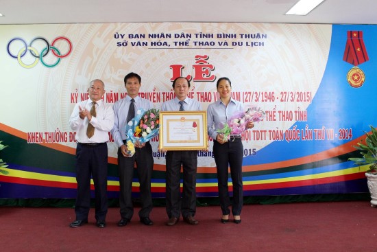 Lễ trao Huân chương Lao động hạng ba do Chủ tịch nước tặng cho Trung tâm Thể dục thể thao Bình Thuận diễn ra vào đúng dịp kỷ niệm 69 năm Ngày Thể thao Việt Nam (27/3/1946 - 27/3/2015).
